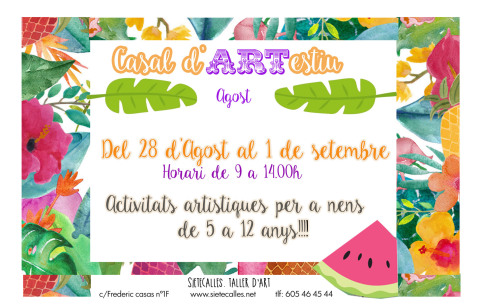 Seguim apostant per la diferència i es per això que us oferim un Casal plenament artístic, amb tallers moderns, actuals, lúdics i divertits sempre amb el nostre sello personal de Sietecalles i professorat llicenciat en Belles Arts.