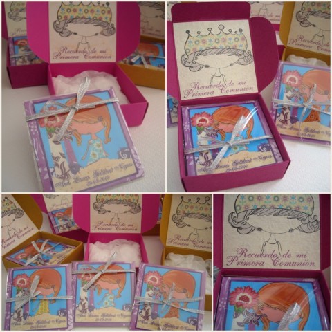 Cajitas de 8 x 8 cm, con ilustración imantada.