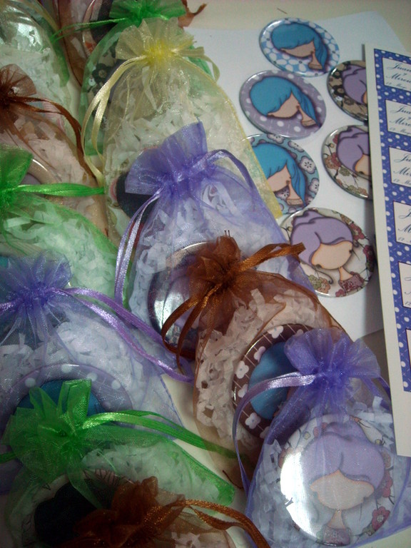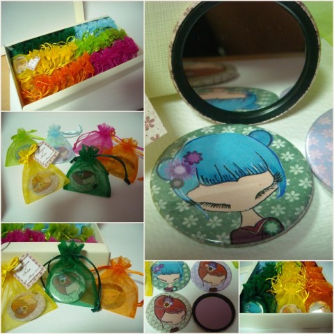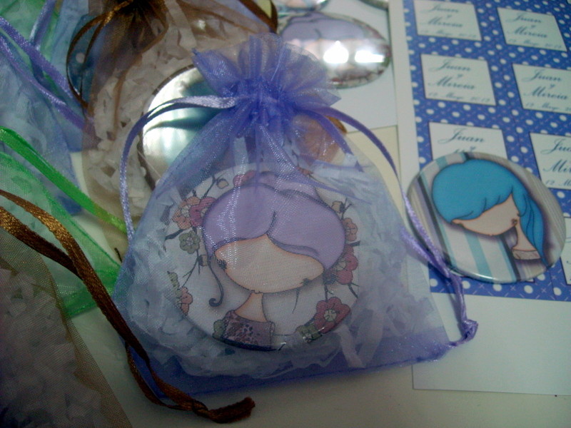 Son espejitos ilustrados de 5,5 cm con sus bolsas.