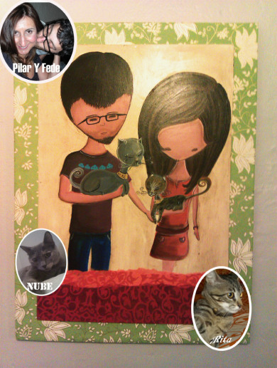 Si quieres hacer o regalar un retrato original de tu familia, amigos, o mascota preferida estás en el lugar indicado!!!! Envíanos tu fotografia y te realizaremos un retrato personalizado y divertido. Puedes personalizarlo elegiendo el tamaño que quieras y también el papel del fondo que te gustaría.